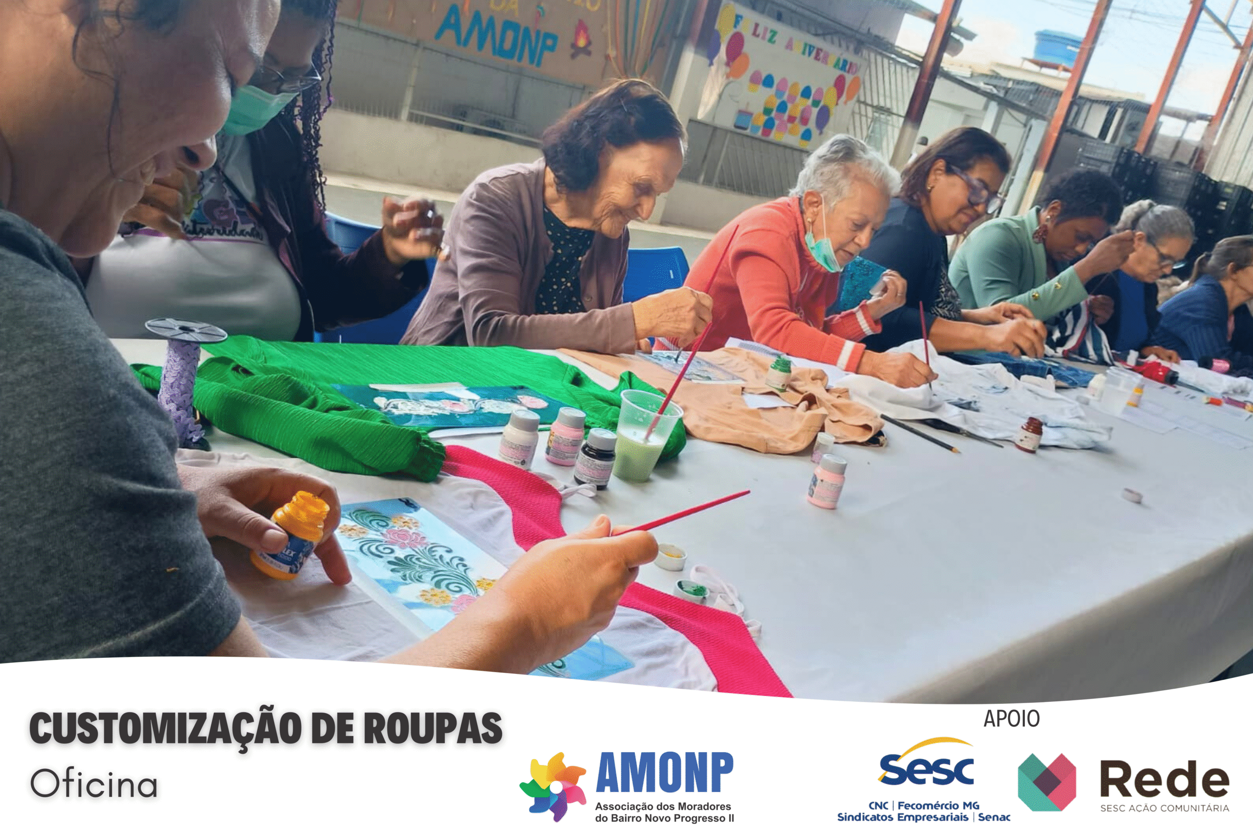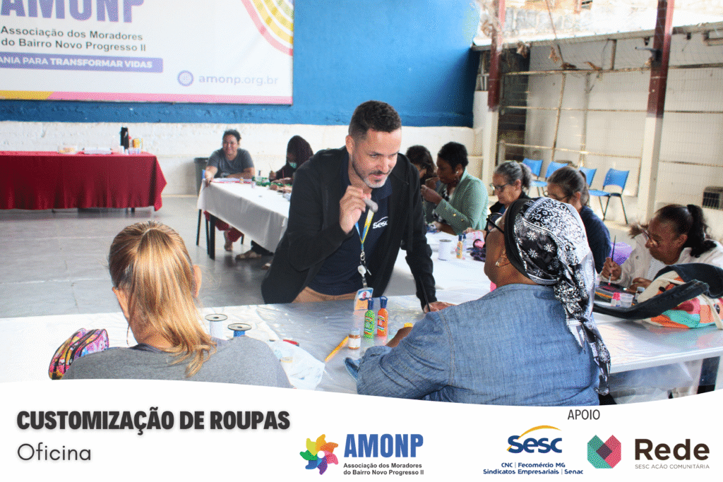 A criatividade tomou conta da comunidade nesta sexta-feira, 15/08, durante a Oficina de Customização de Roupas, realizada em parceria entre a AMONP e a Rede Sesc Ação Comunitária Contagem. O evento transformou peças esquecidas no armário em roupas únicas e cheias de estilo, unindo aprendizado, moda sustentável e expressão pessoal.